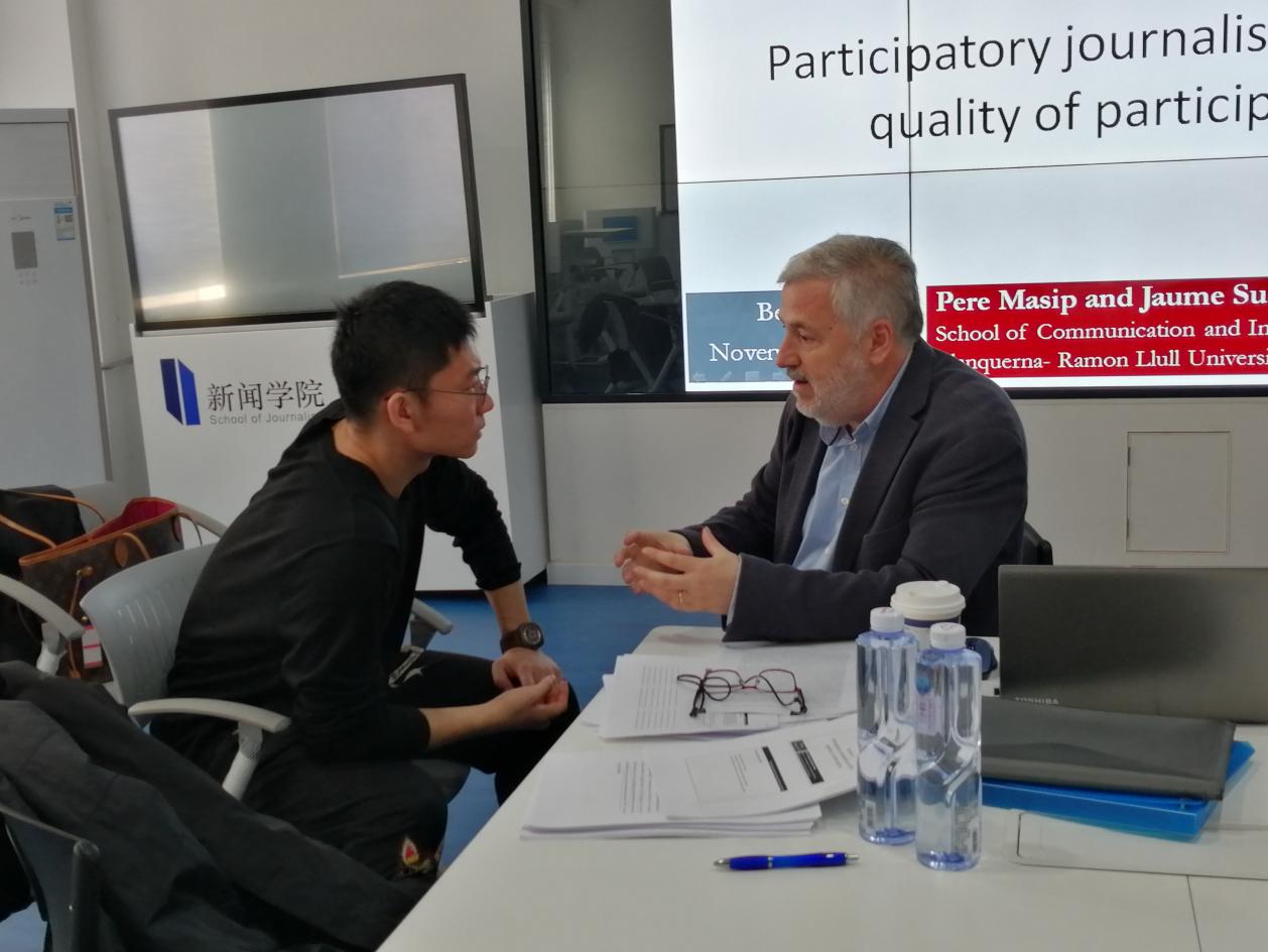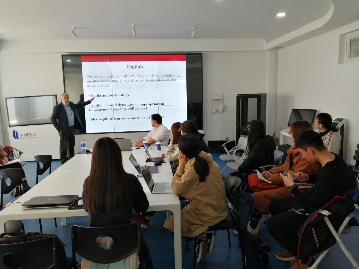 主题工作坊一开始,两位教授就对欧洲以及西班牙的媒介体系和新闻接受趋势进行了介绍,并提出,“每个国家都有属于自己的媒介体系,我们要从中找出值得我们学习的地方”。