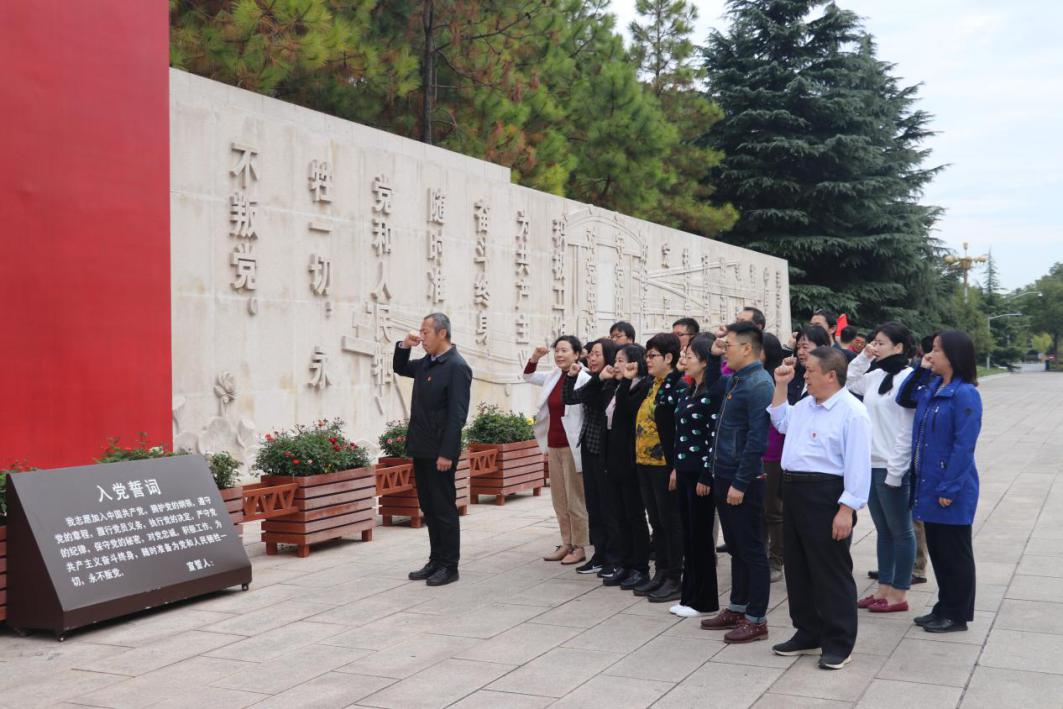 从纪念馆出来,党员教师来到入党宣誓墙处举行集体宣誓仪式,老师们以洪亮的声音、饱满的热情重温了入党誓词。宣誓仪式庄严肃穆,激发了党员教师爱党爱国爱人民的深情,更是体会到习近平总书记所说的,“入党誓词字数不多,记住并不难,难的是终身坚守。每个党员要牢记入党誓词,经常加以对照,坚定不移,终生不渝。”