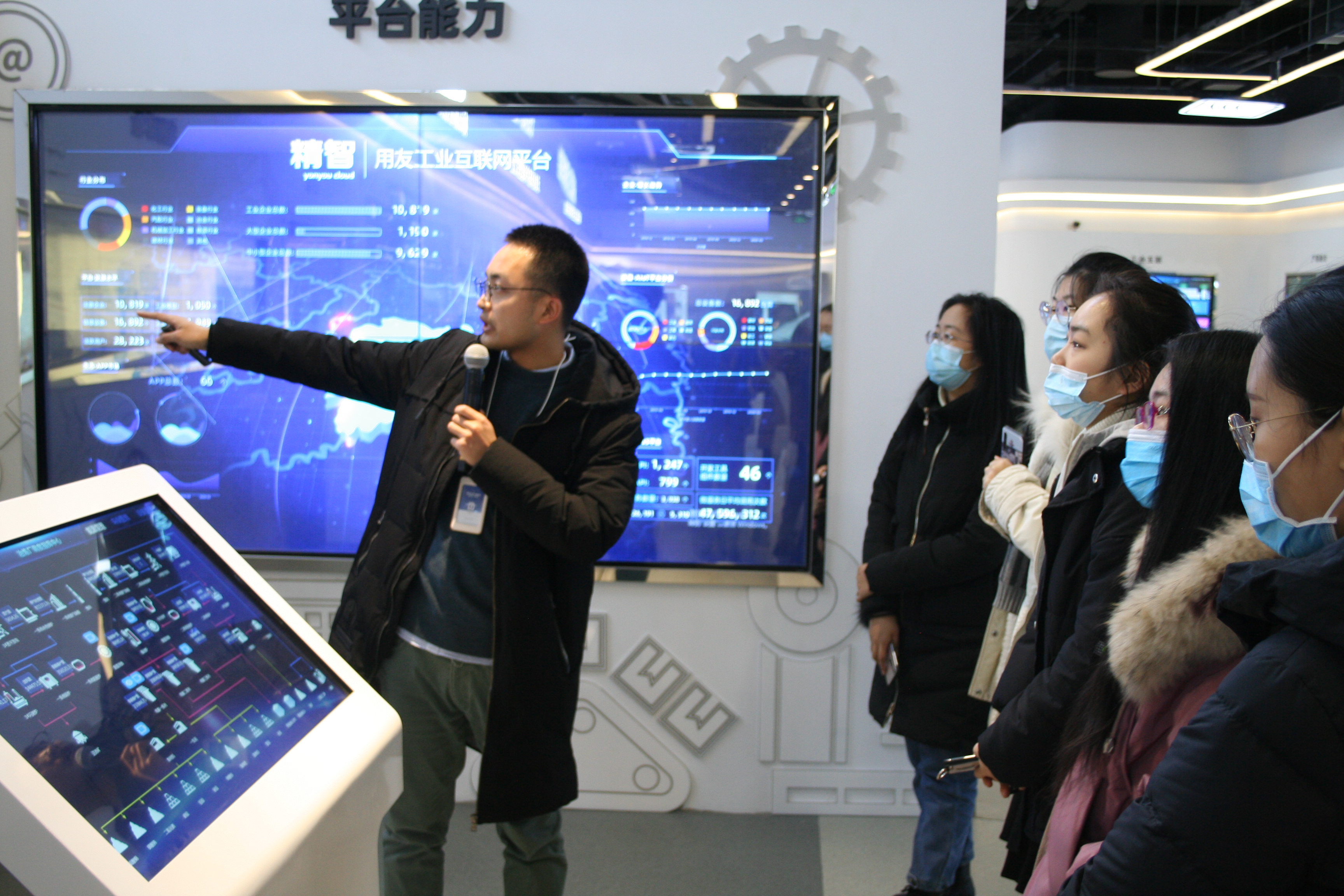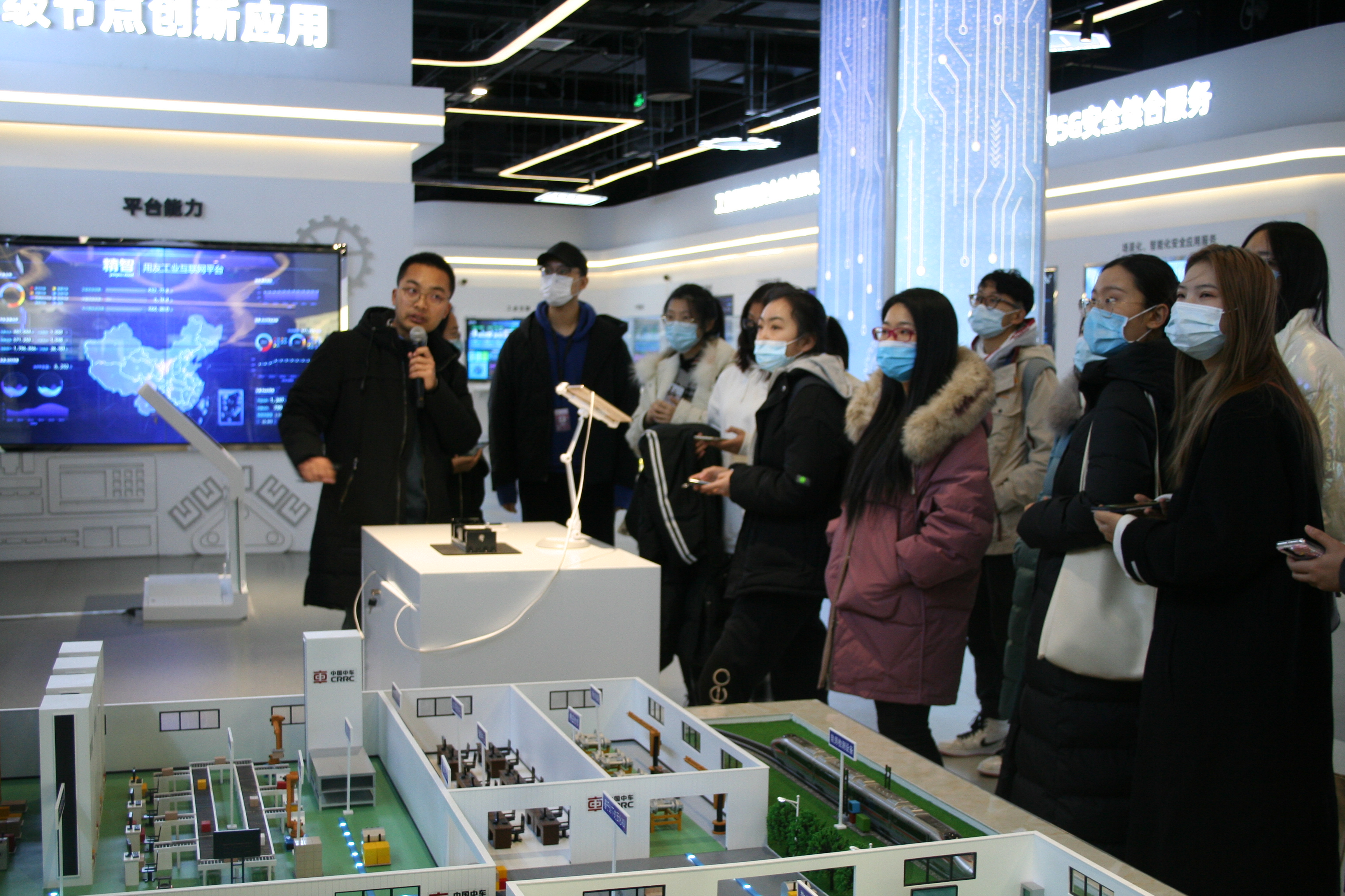 师生们首先在工联院团委副书记王青春的带领下参观了工业互联网测试体验中心。老师的精彩讲解让同学们对中国工业互联网平台智能化服务以及基于工业互联网平台的产业赋能、数字孪生、服务化延伸等内容有了初步的了解,同时对探索工业互联网领域产生了极大的兴趣。