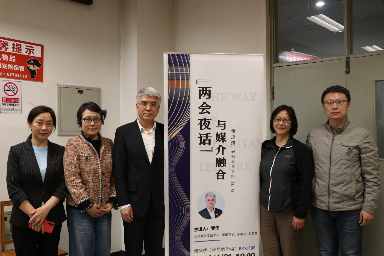 由人民网党委副书记、副董事长、总编辑、副总裁罗华率领的《两会夜话》制作团队进行了主题为“《两会夜话》与媒介融合”的讲座分享。