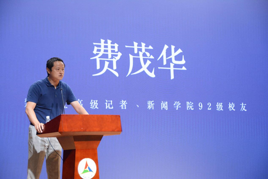92级新闻专业的费茂华作为员工代表上台发言。作为新华社的高级记者,他的摄影作品曾获中国新闻奖,多次参与国家重大新闻事件报道。他也是中国目前唯一一位既获得过荷赛奖项,又同时获得美国新闻摄影师协会(NPPA2008最佳新闻摄影工作评选(BOP)年度体育摄影师金奖和美国全球年度图片奖(POYI)银奖的摄影师。