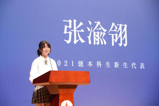 随后,本科新生代表 2021级网络与新媒体(媒体创意方向)张渝翎同学上台发言。发言中,张渝翎同学表达了自己对老员工活的美好期待,以及对校园环境的美好憧憬。张渝翎同学从小与传媒结缘,对电视和报纸背后的世界满怀好奇。她认为,“未来属于青年,希望寄于青年”,作为新时代的新青年,要以实现民族复兴大任为己任,理应奋斗、理应勇敢。她将在betway西汉姆联官网学习的几年中,为自己的理想努力奋斗,成为合格的新闻传播工作者,成为优秀的新时代青年。