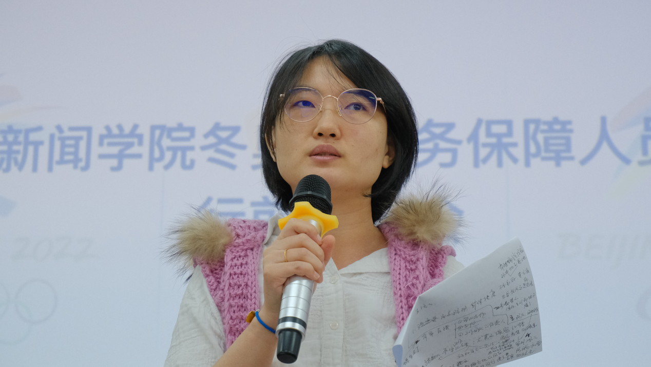 最后,陈书记提醒同学们要做好防护工作。首先,在疫情防护方面,同学们要严格遵守上级组委会规定的动作,好好消化工作的流程和要求;此外,考虑到冬天的寒冷天气条件,同学们还要做好保温工作,注意身体健康,为服务工作保驾护航。