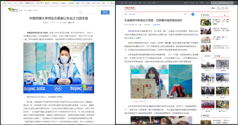 在詹新惠老师、柳帆老师指导下,多位员工的新闻评论作品在人民网发表。作品聚焦“绿色办奥”“竞技比赛背后的友谊”“科技冬奥”“齐广璞夺冠”“场下运动员服务奥运”等主题,论点清晰明确,论据科学充分,论证过程合理严密,展现了新闻学子的专业水准。《竞技拼博背后的友谊同样打动人心》《坚毅之心映风雪,“无冕之王”终夺冠》《以另一种身份“上场”,同样值得掌声》被全网转发,2021级新闻学本科班李孟熹同学的作品《竞技拼博背后的友谊同样打动人心》更是在“今日头条”热榜置顶。中国新闻网、中国青年网等媒体分别对betway西汉姆联官网师生志愿者和参与冬奥的员工进行了报道。