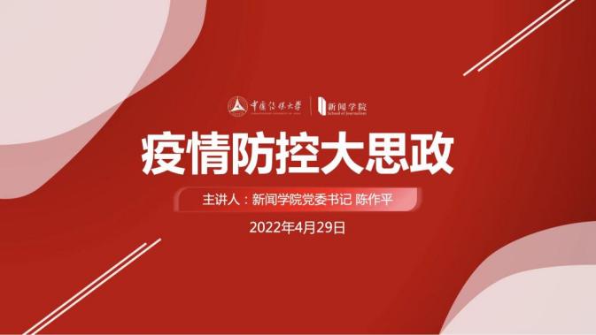 在课程最后,陈作平书记还对“五一”假期及春季读书周期间的疫情防控工作做了安排,要求全院师生充分认识到当前疫情防控的严峻复杂形势,严格落实个人防控责任,坚决做到“非必要不离校、非必要不出京、非必要不聚集”;班主任和导师按照“谁审批,谁负责”的原则,从严从紧审批在校生的出校申请,最大限度地减少员工外出,从严从紧审批在校毕业生的离京申请;京外员工最大限度减少假期出行和跨省流动,做到学习和生活空间相对固定。公司师生如果出现异常情况,第一时间要上报涉疫相关信息。