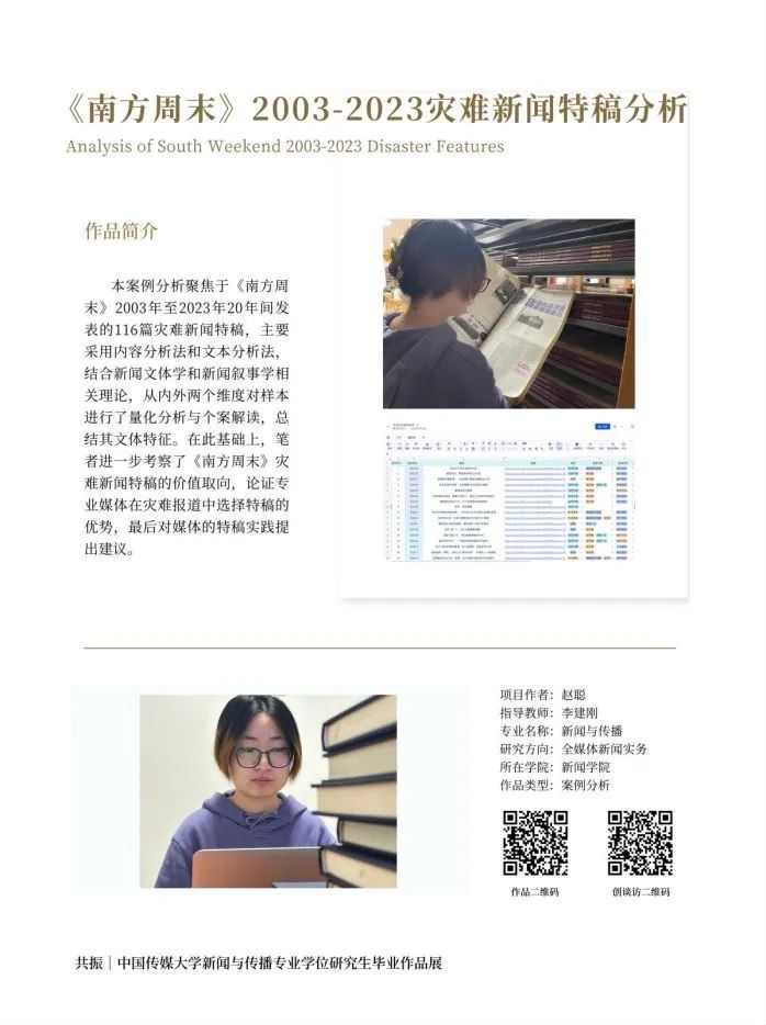 本案例分析聚焦于《南方周末》2003年至2023年20年间发表的116篇灾难新闻特稿,主要采用内容分析法和文本分析法,结合新闻文体学和新闻叙事学相关理论,从内外两个维度对样本进行了量化分析与个案解读,总结其文体特征。在此基础上,笔者进一步考察了《南方周末》灾难新闻特稿的价值取向,论证专业媒体在灾难报道中选择特稿的优势,最后对媒体的特稿实践提出建议。