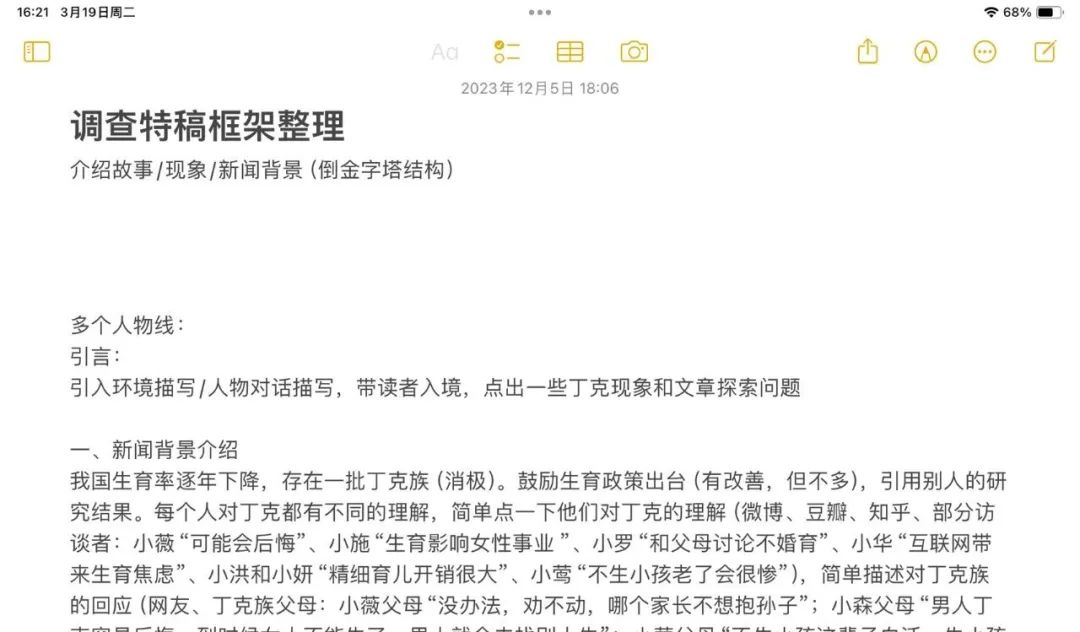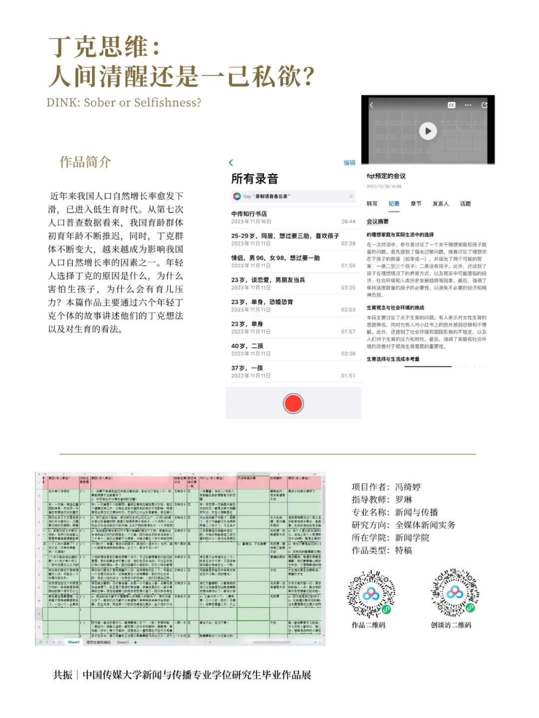 近年来我国人口自然增长率愈发下滑,已进入低生育时代。从第七次人口普查数据看来,我国育龄群体初育年龄不断推迟,同时,丁克群体不断变大,越来越成为影响我国人口自然增长率的因素之一。年轻人选择丁克的原因是什么,为什么害怕生孩子,为什么会有育儿压力?本篇作品主要通过六个年轻丁克个体的故事讲述他们的丁克想法以及对生育的看法。