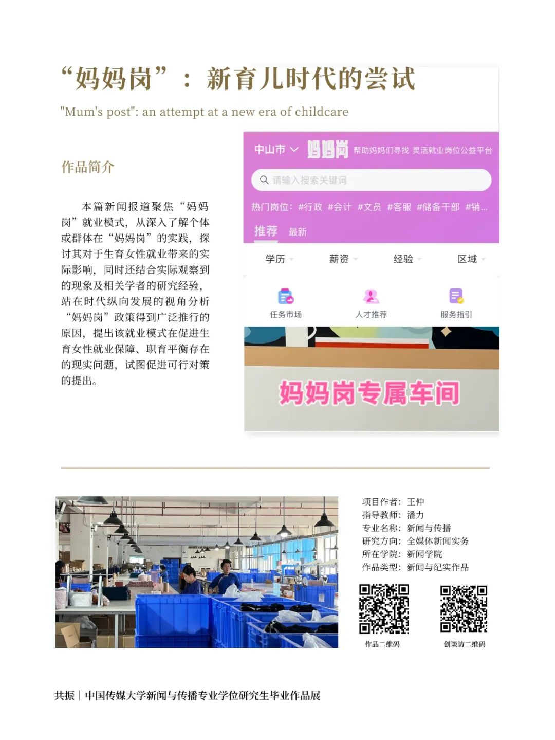 本篇新闻报道聚焦“妈妈岗”就业模式,从深入了解个体或群体在“妈妈岗”的实践,探讨其对于生育女性就业带来的实际影响,同时还结合实际观察到的现象及相关学者的研究经验,站在时代纵向发展的视角分析“妈妈岗”政策得到广泛推行的原因,提出该就业模式在促进生育女性就业保障、职育平衡存在的现实问题,试图促进可行对策的提出。